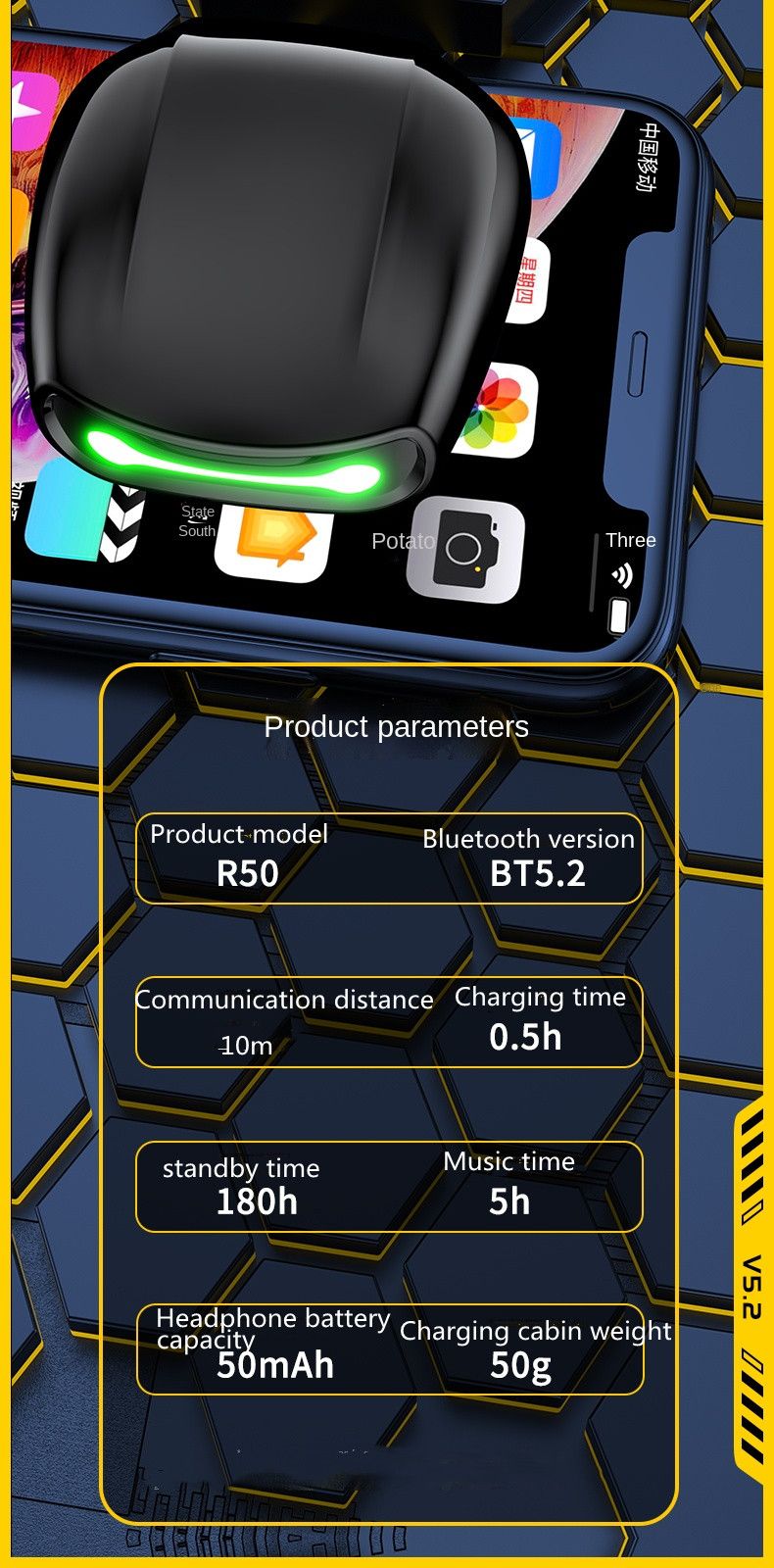 Best-selling Transformers T10pro In-ear Wireless Bluetooth Headphones 6.0 TWS E-sports Low Latency Gaming Noise Reduction Sports