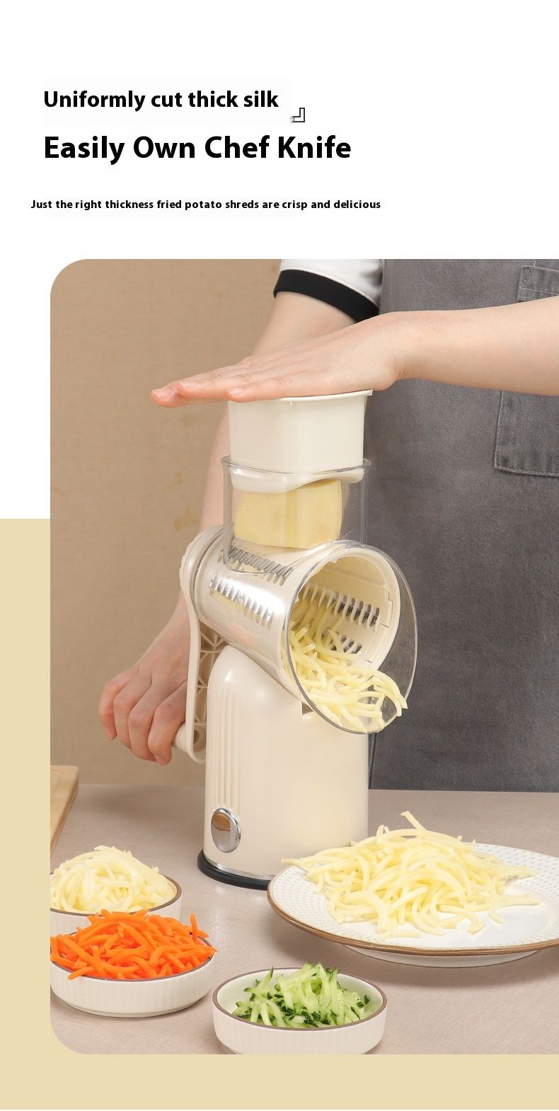 Multifunctional stainless steel hand-cranked vegetable slicer, chopper, wavy knife, fruit and vegetable slicer, shredder tool