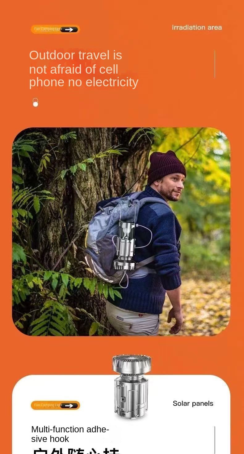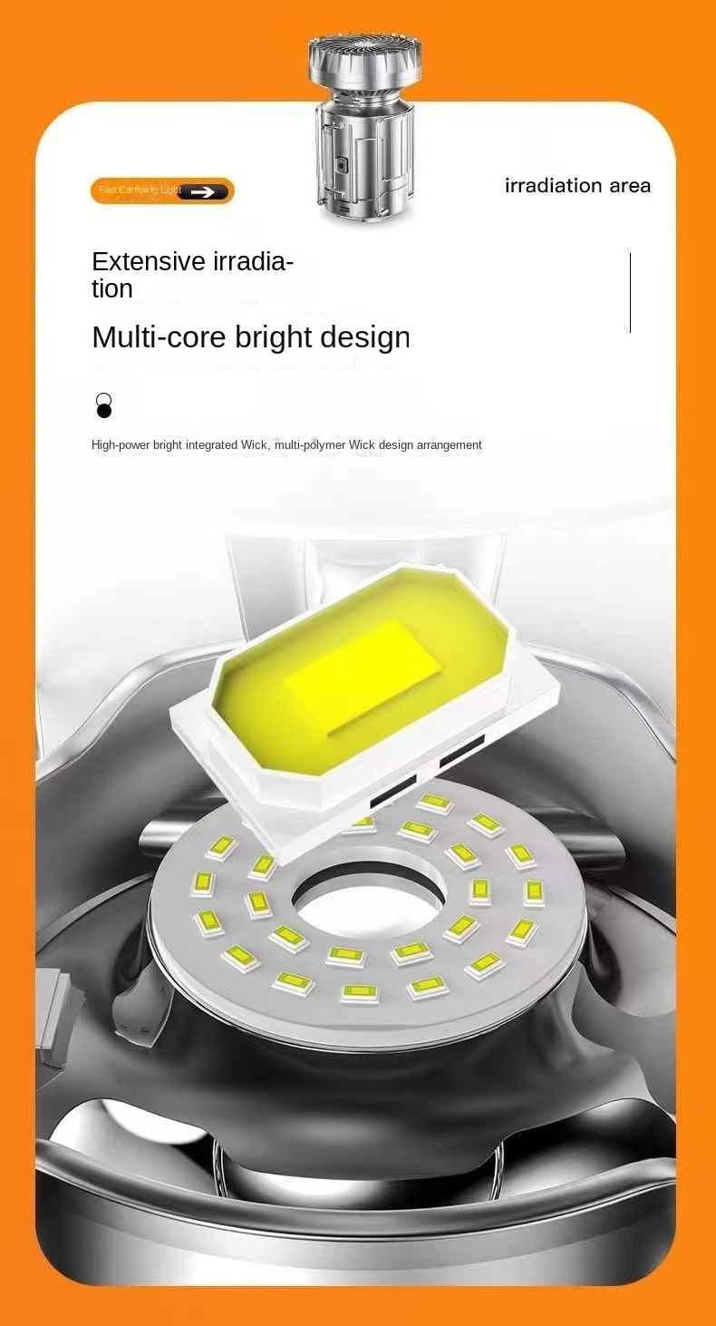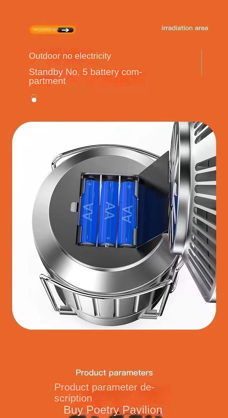 Outdoor LED camping light fan, battery-powered, white light, portable and hangable
