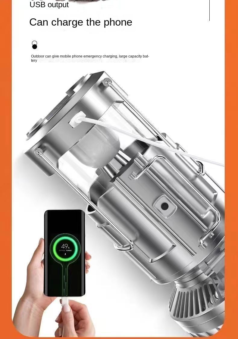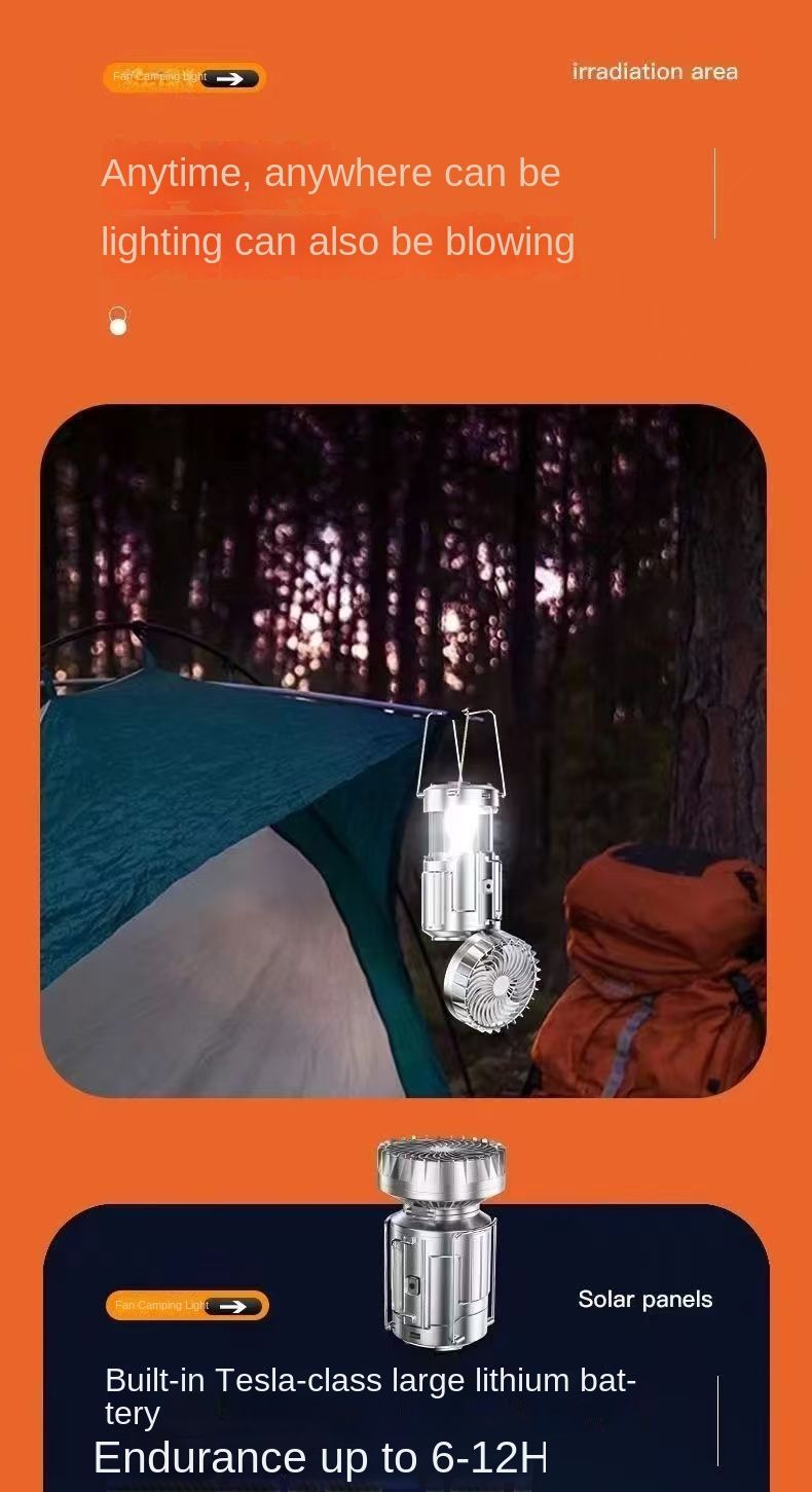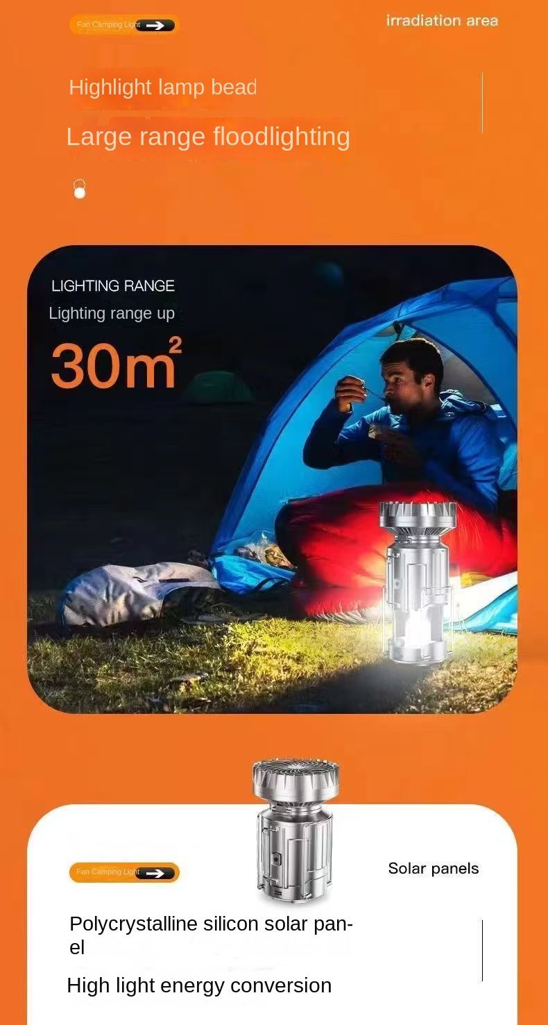Outdoor LED camping light fan, battery-powered, white light, portable and hangable