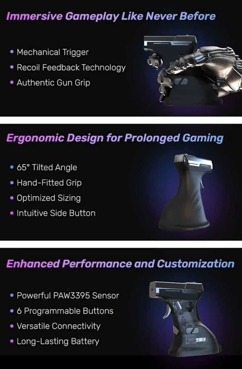 RAGNOK Gun-style Mouse Shooting Game Vertical Handle Grip Trigger Vertical Mouse Peripheral Gun-shaped Pulley