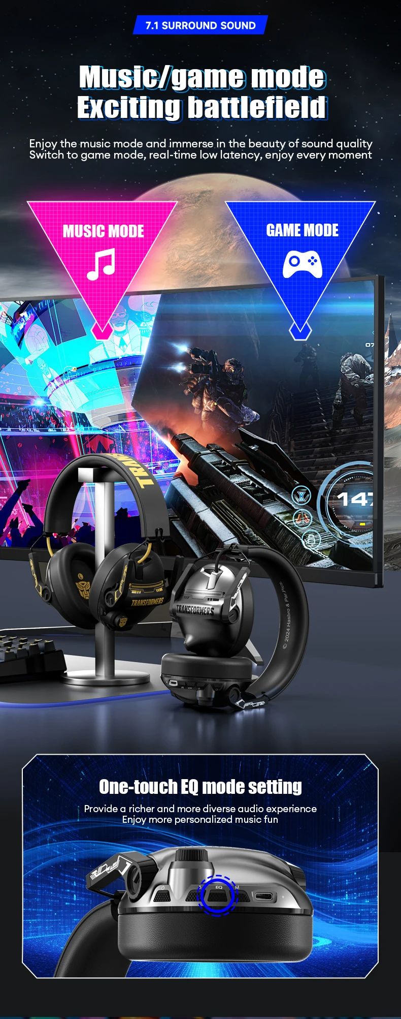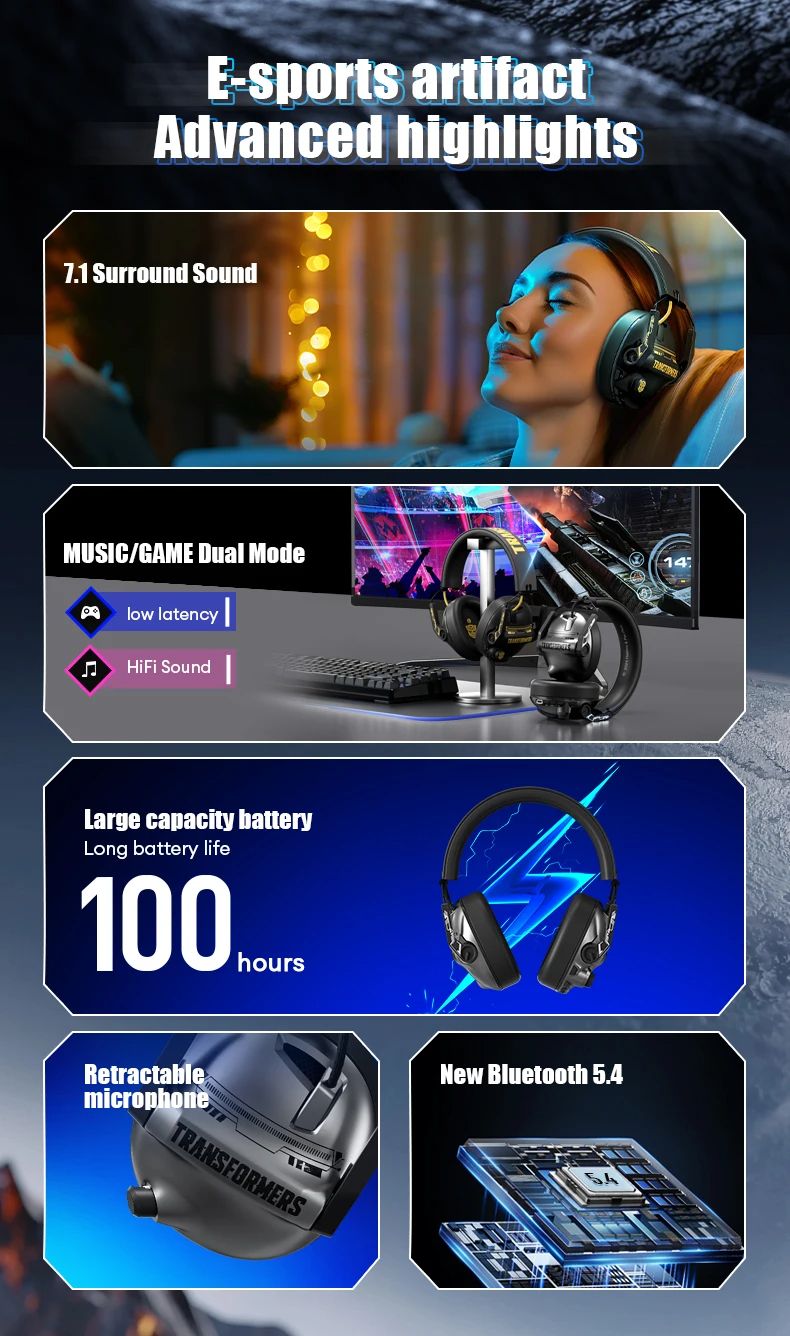 Transformers TF-G03 Bumblebee Headset, Gaming Headset, Music Headset, Dual-Mode for PS4 Gaming Station 4, Gaming PC, and Chatting PC