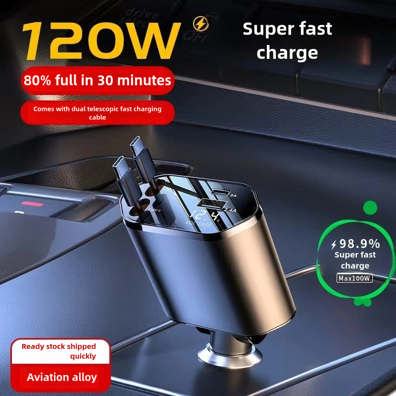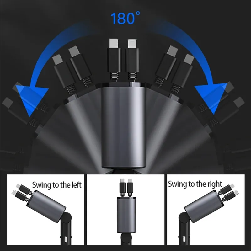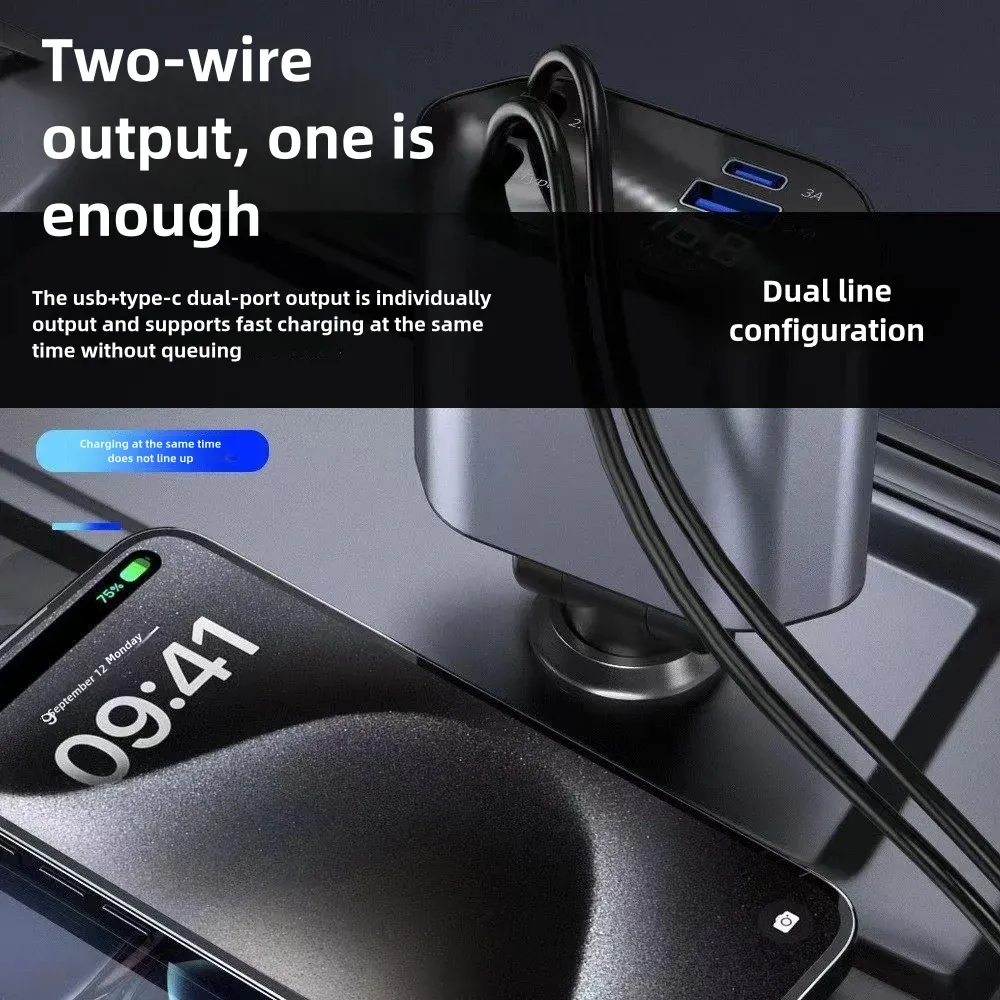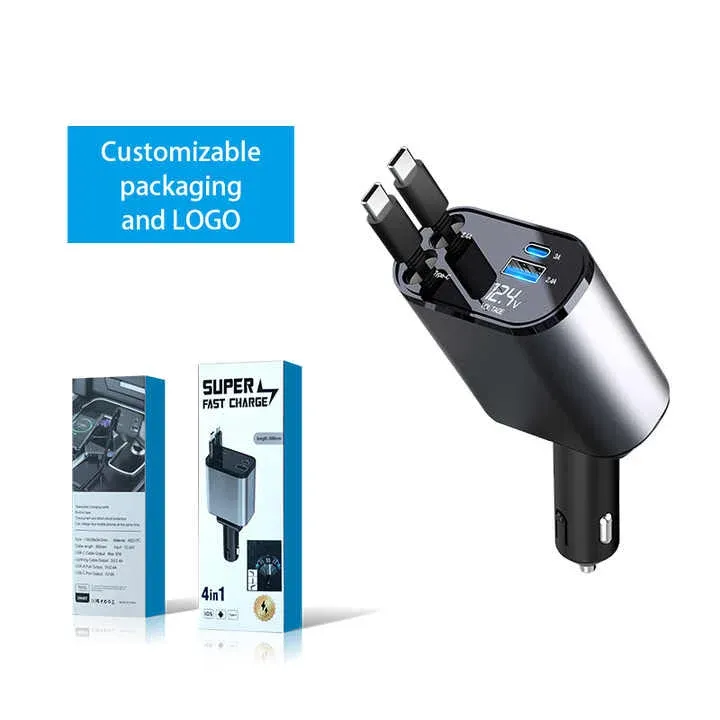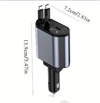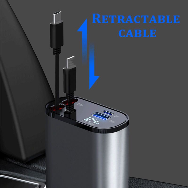 Ultra Fast Charging Car Adapter with Retractable Cable PD Charge QC3.0