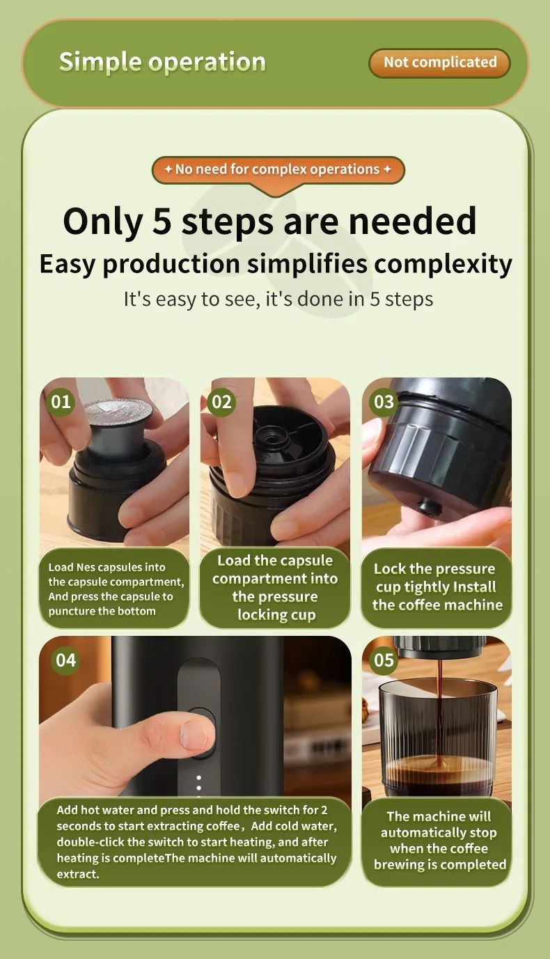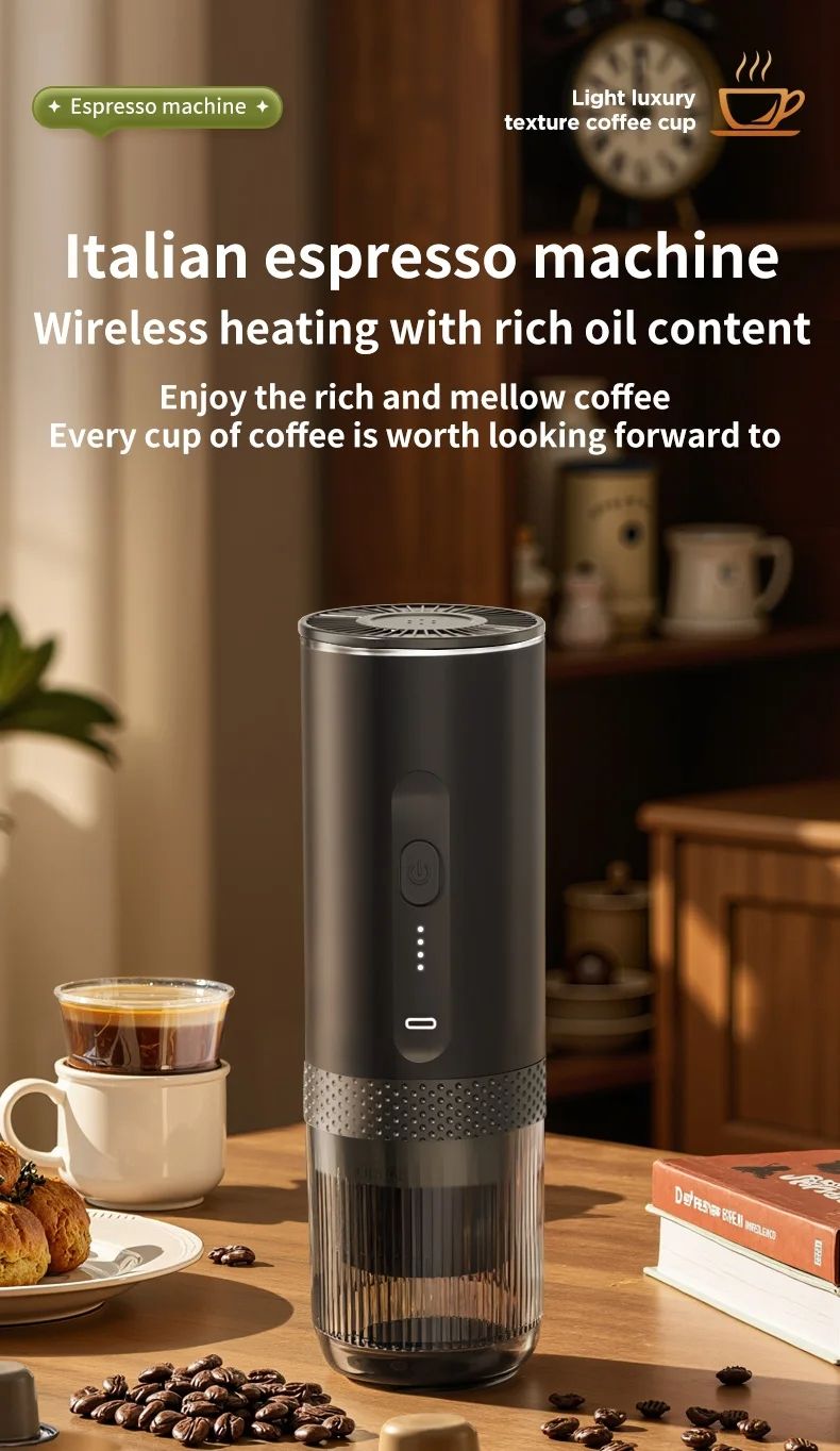Wireless Portable Capsule Coffee Machine, Fully Automatic Espresso Pump Pressure Wireless Heating Extraction Espresso Machine