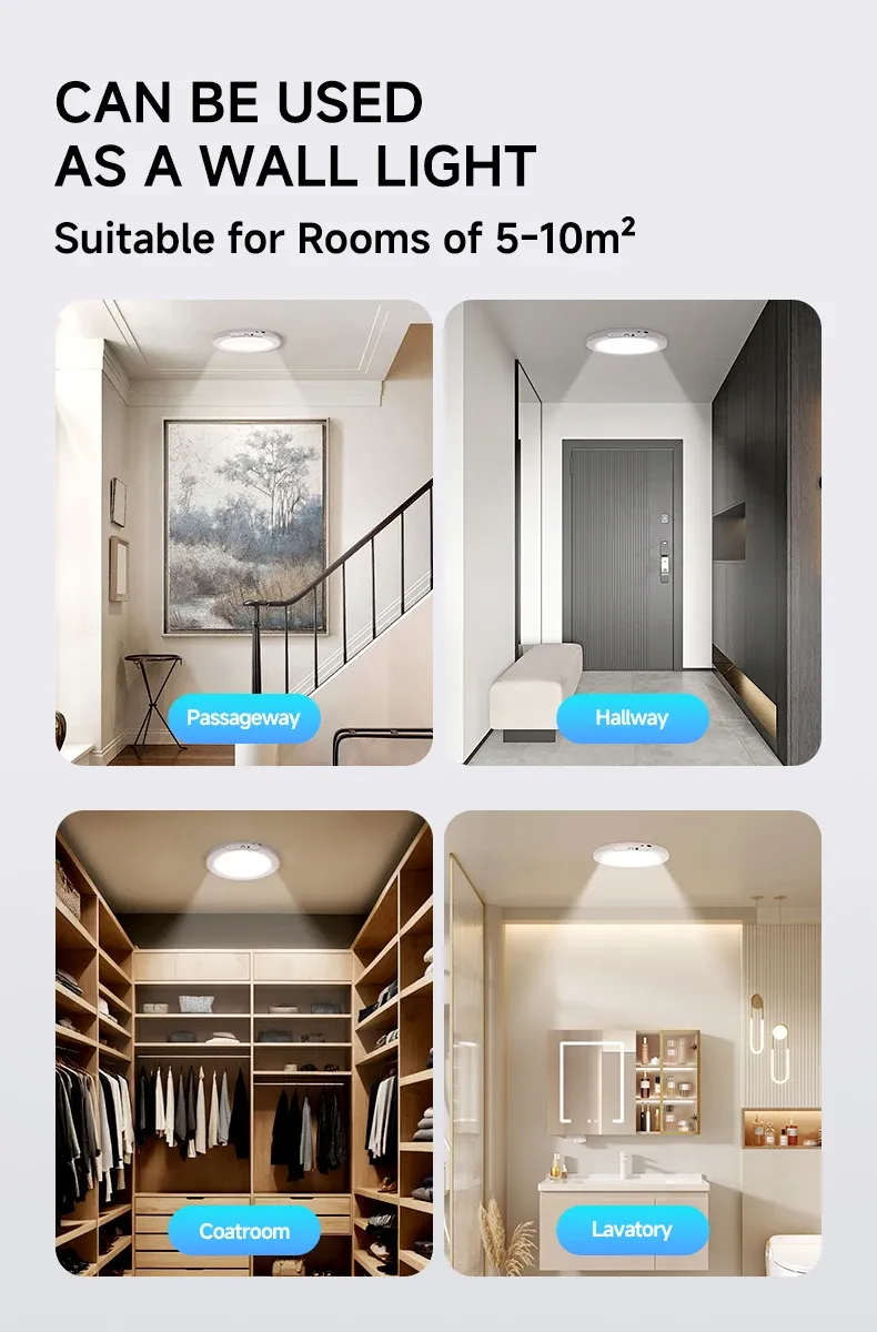 Magnetic Wireless LED Ceiling Light, Closet Light, Staircase Light, Storage Room Light, Corridor Light, Porch Light, Shower Light