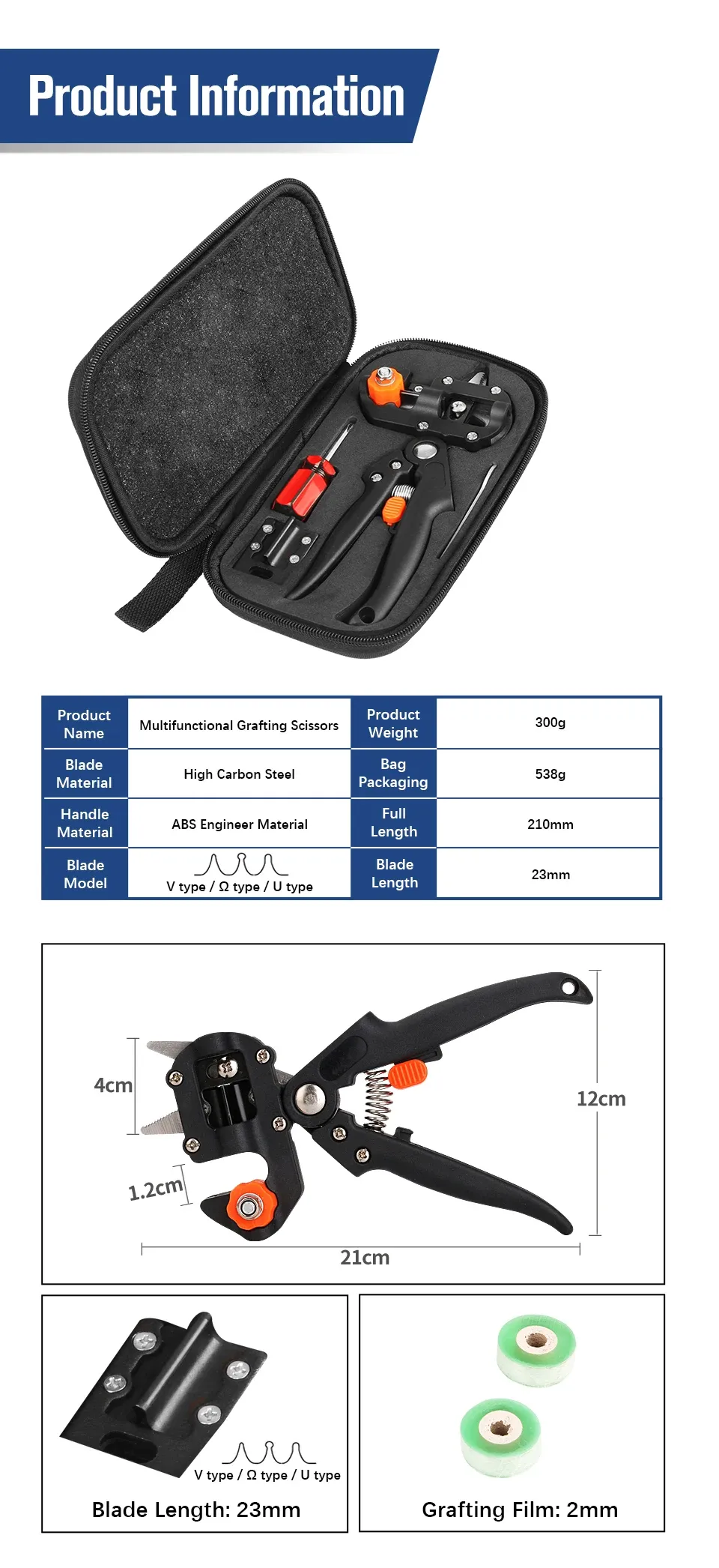 Pruning, cutting, grafting scissors, a multi-functional tool for orchard and garden pruning, plant grafting, and home gardening
