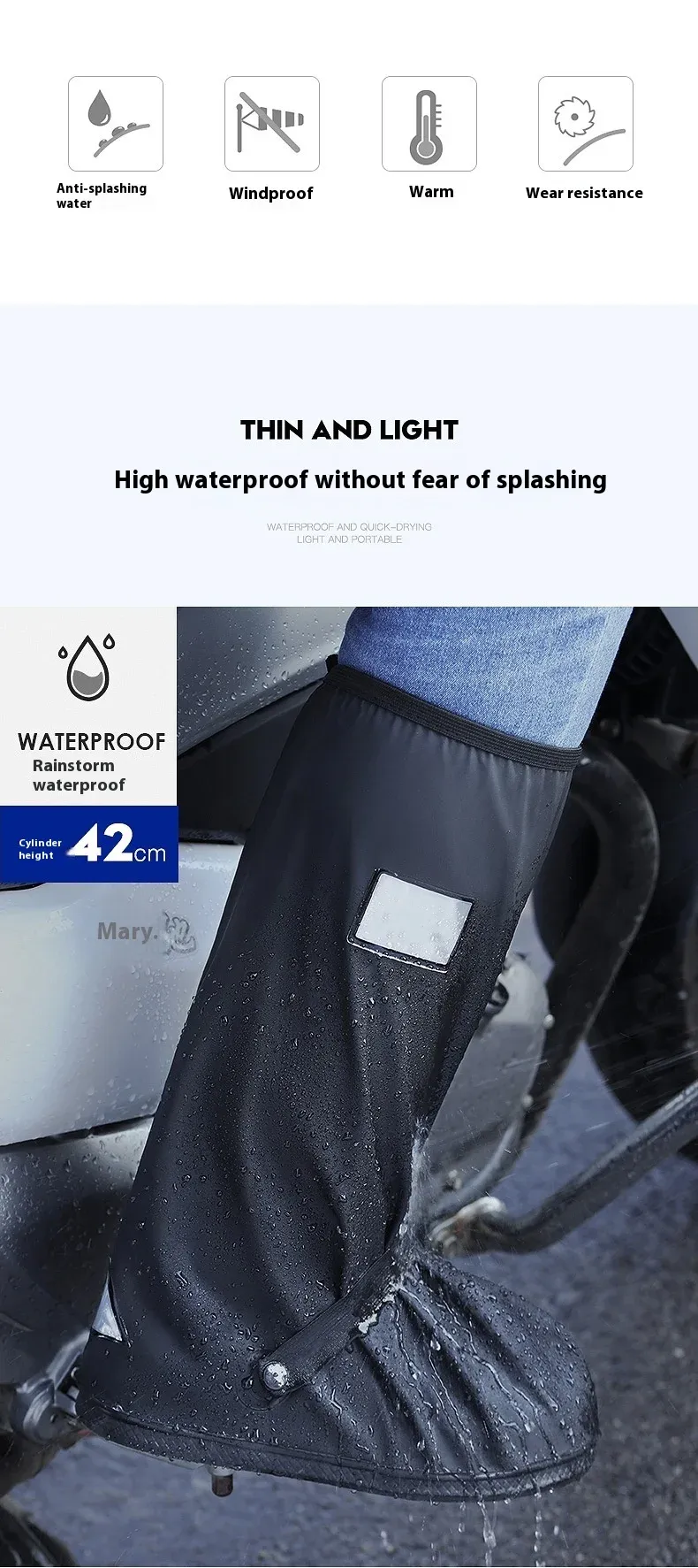 Reusable and foldable rain boots and shoe covers with zippers, non-slip and waterproof, suitable for both men and women