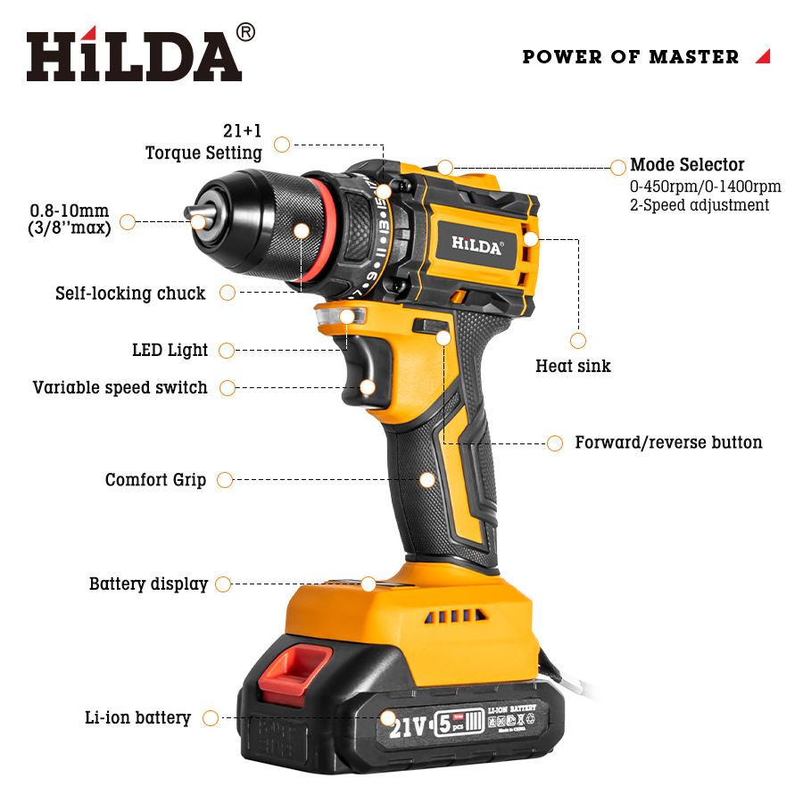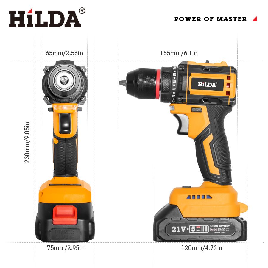 21V Cordless Drill with High Torque, Brushless Lithium-Ion Rechargeable Drill, Electric Screwdriver, Mini Power Drill