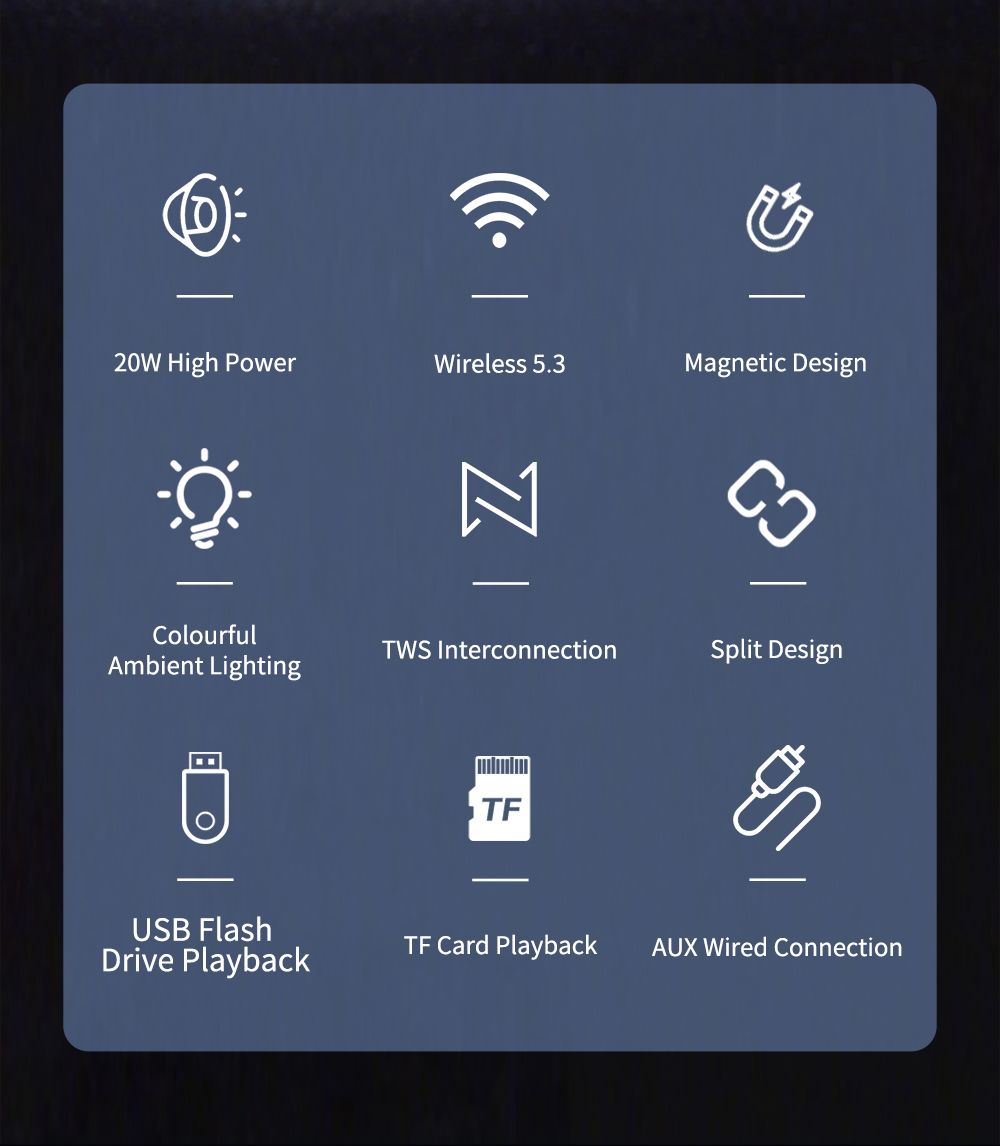 Best-selling 2-in-1 magnetic colorful Bluetooth speaker, outdoor audio, portable TWS with heavy bass