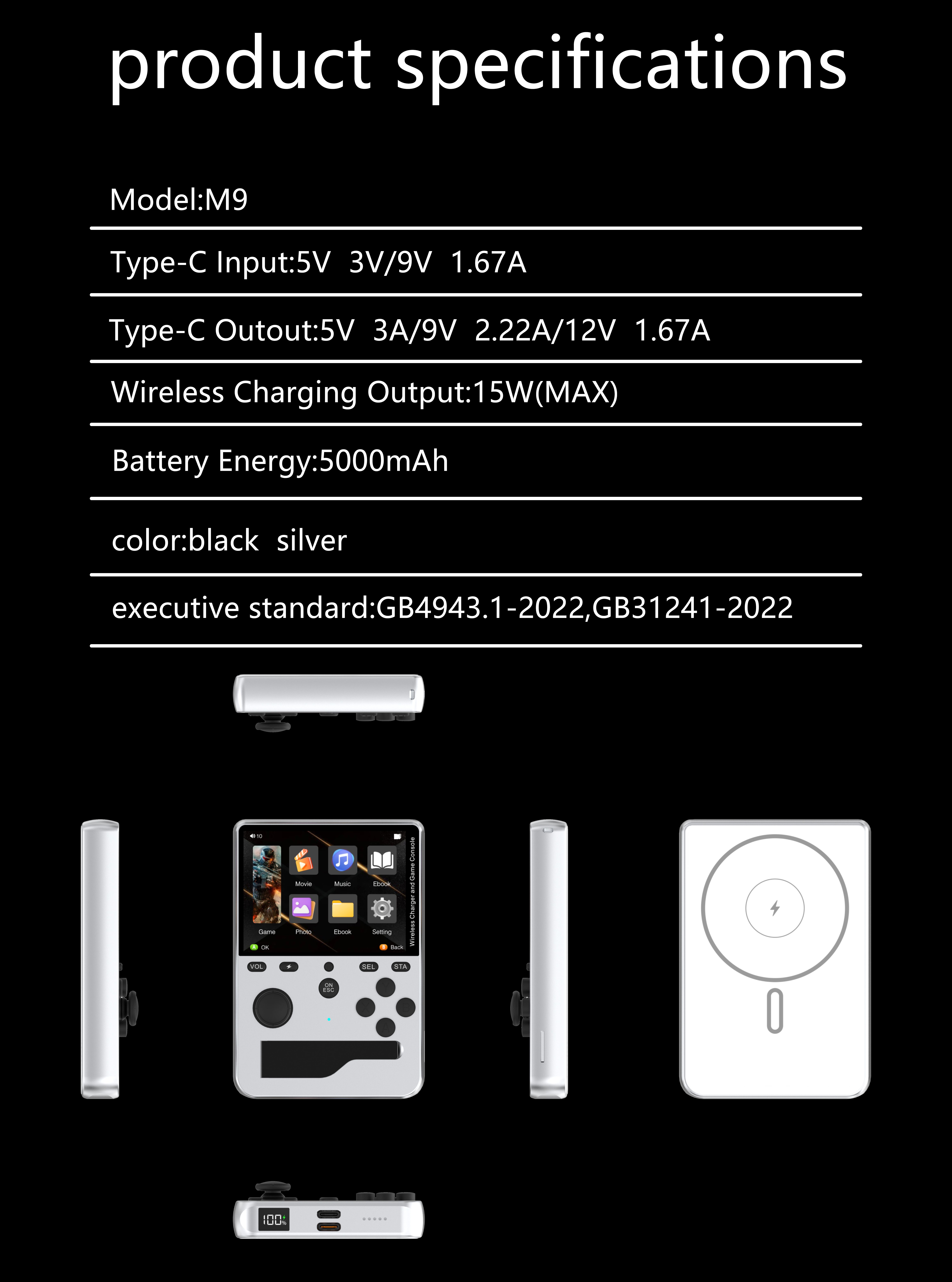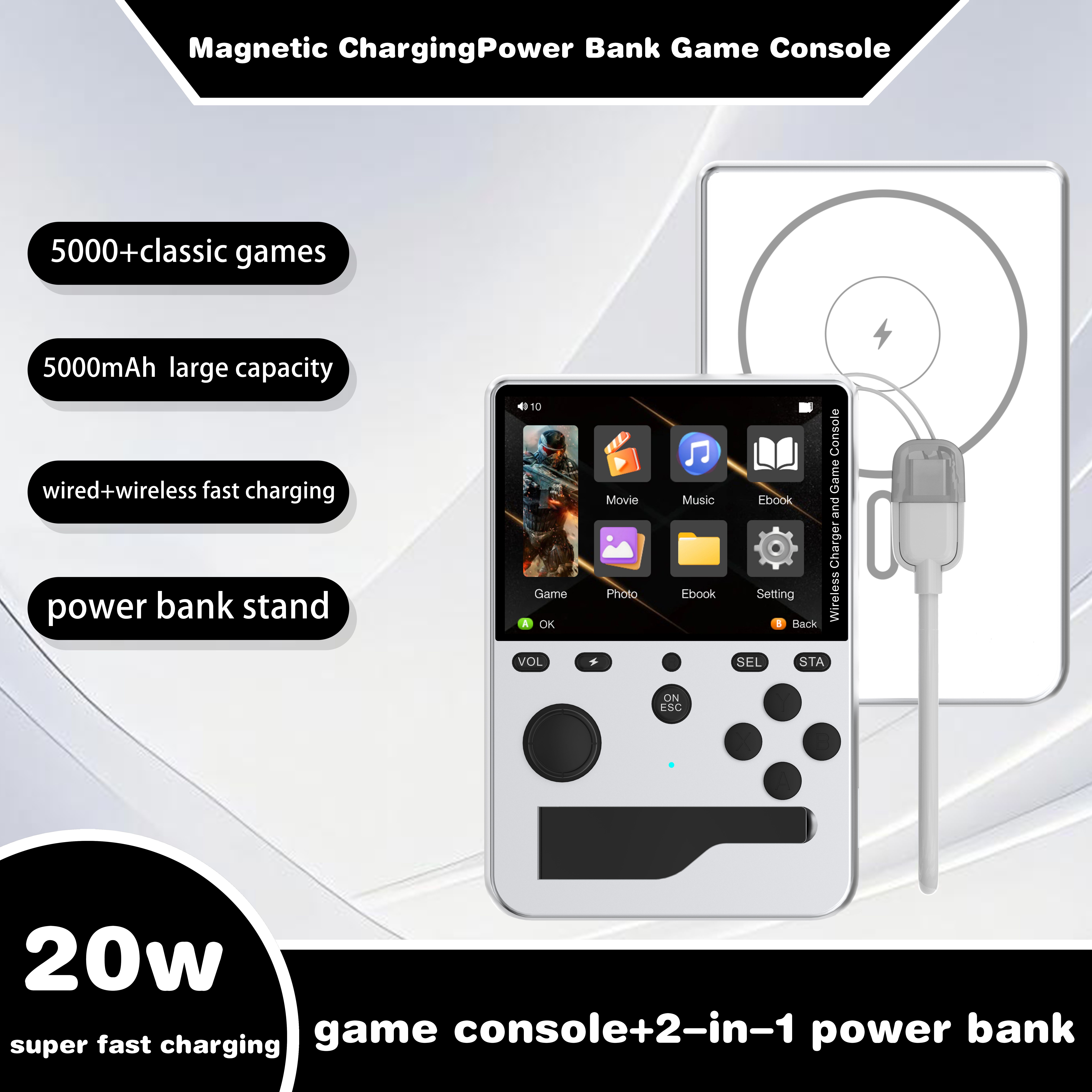 2026 New M9 Magnetic Power Bank Game Console, Portable with Over 5000 Classic Games