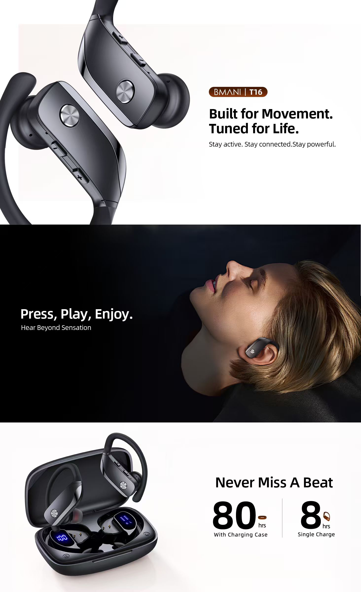 2026 New Sports Ear-hook Bluetooth Headphones - Secure Fit 8H Playtime LED Battery Display Dual Mics Clear Calls
