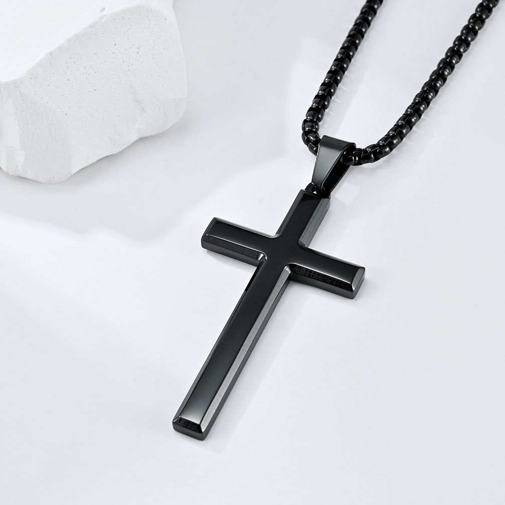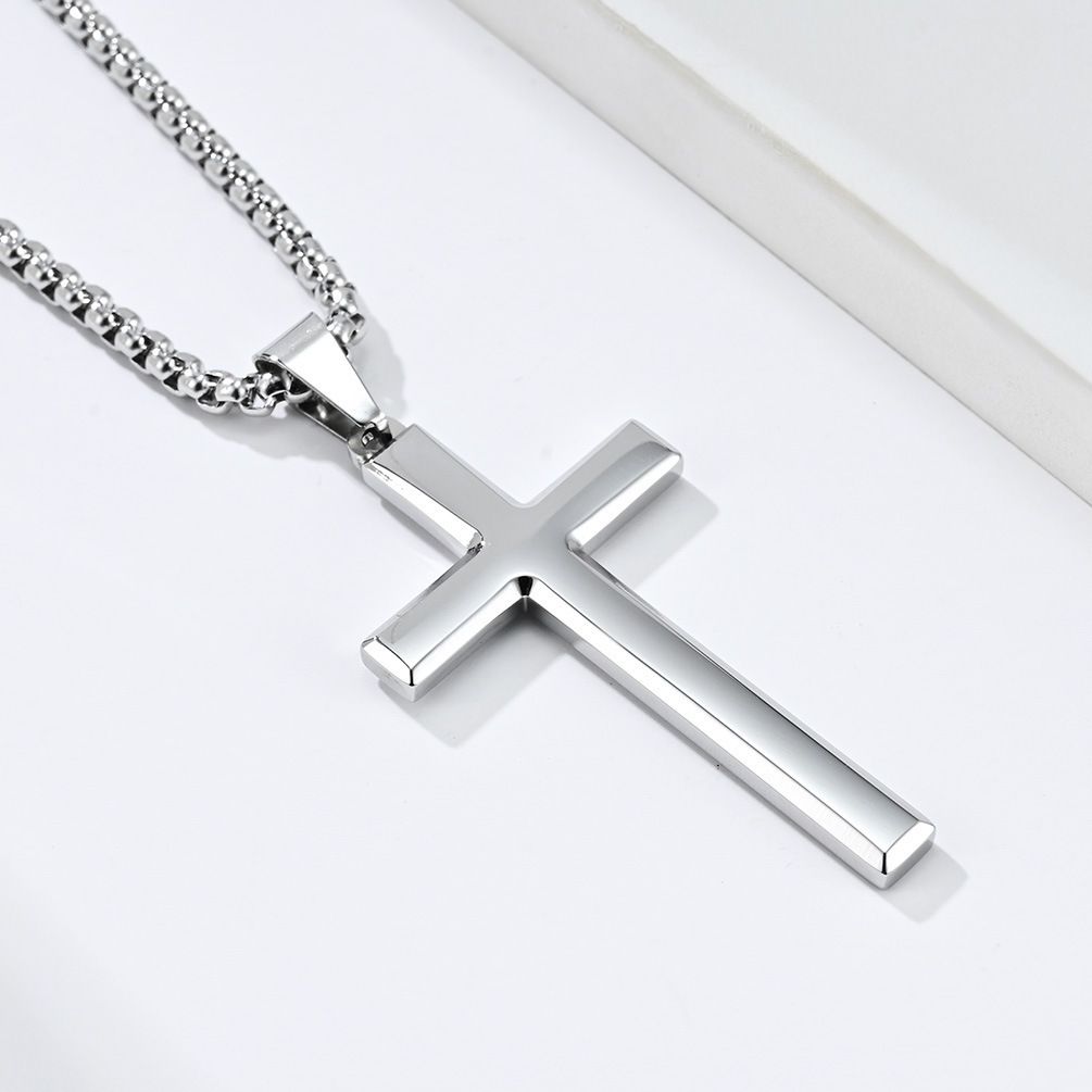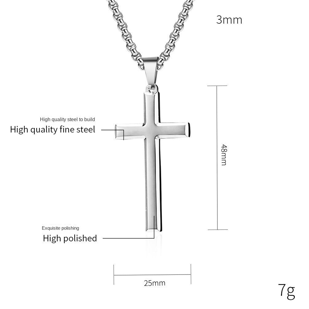 New style neutral men's slanted titanium steel cross necklace, simple and versatile sweater chain, trendy pendant accessory