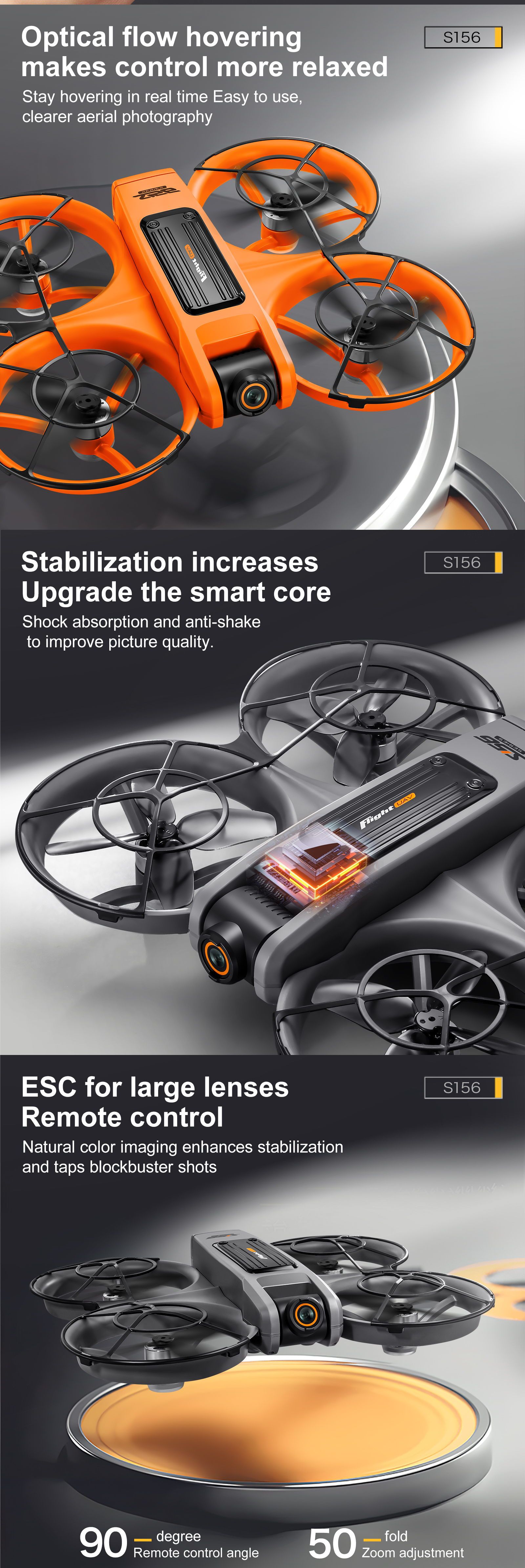 S156 Drone with Dual Cameras, Wifi FPV, Optical Flow Screen, Remote Control, Brushless Folding Quadcopter Remote Control Drone