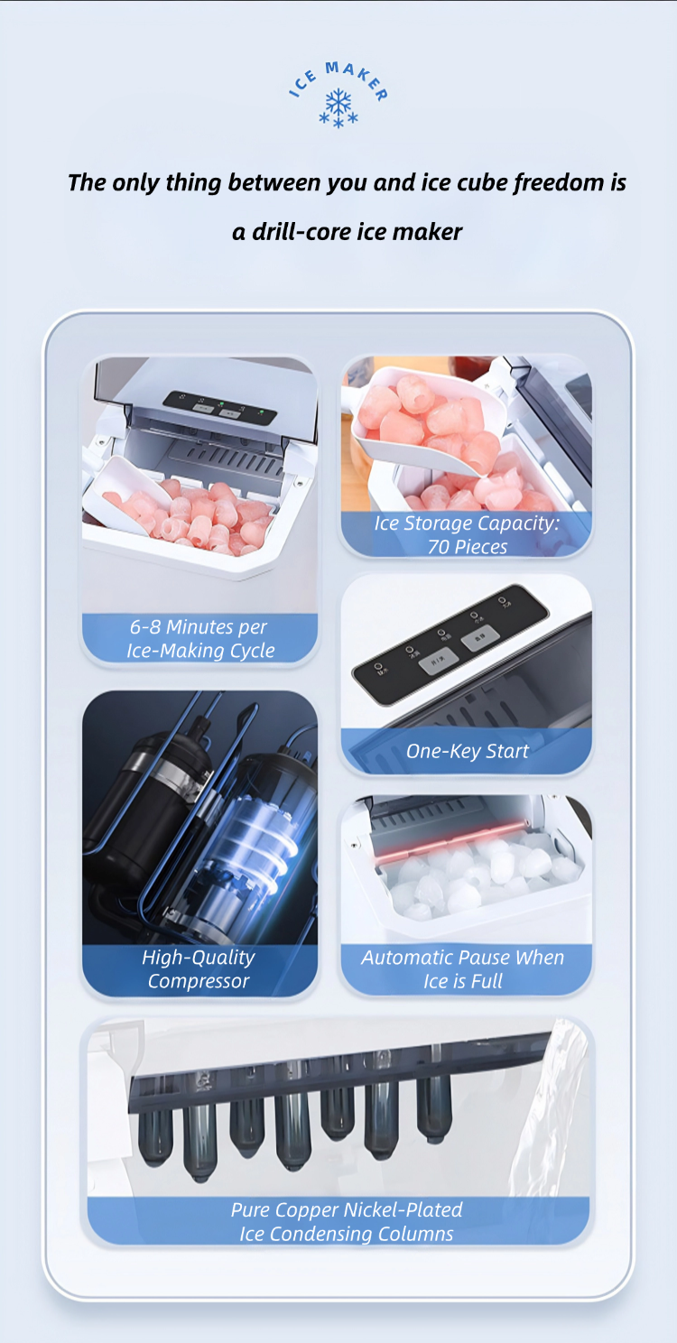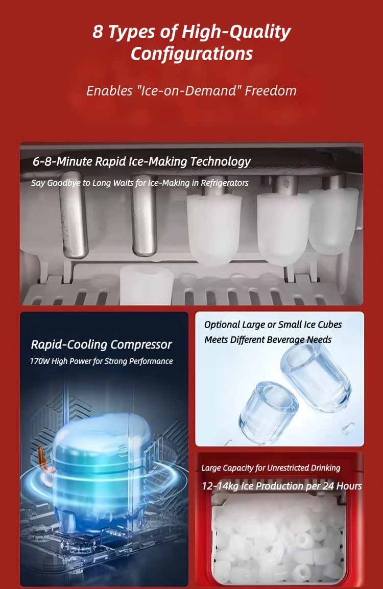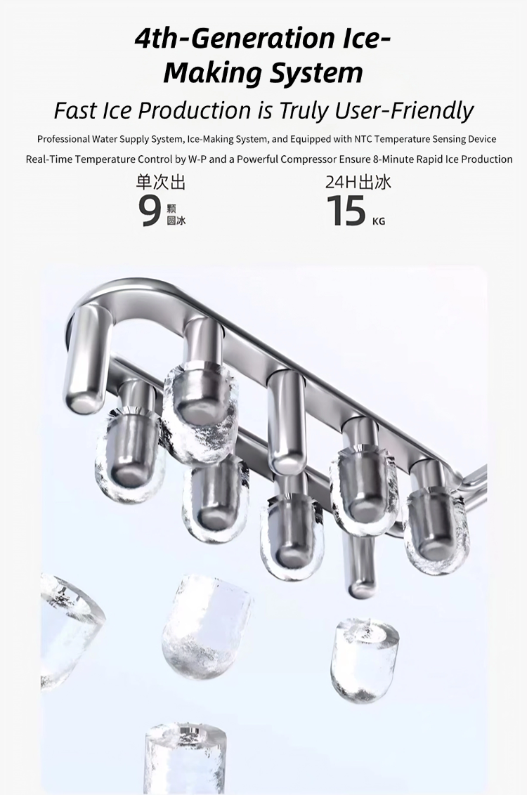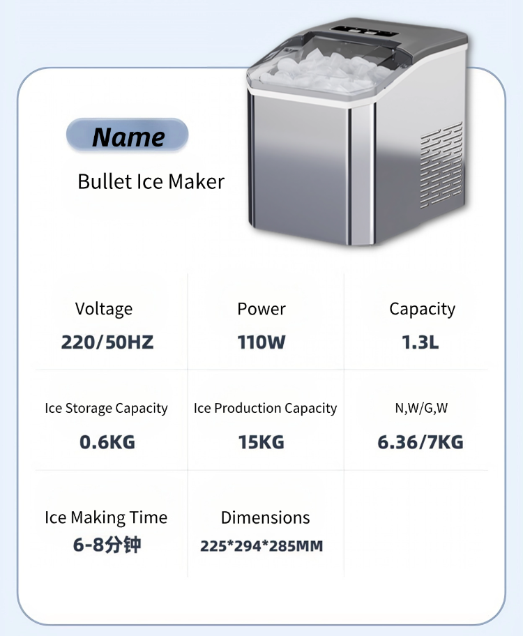 Small ice maker for home and dormitory use, mini dormitory automatic multi-functional 15KG cube ice maker
